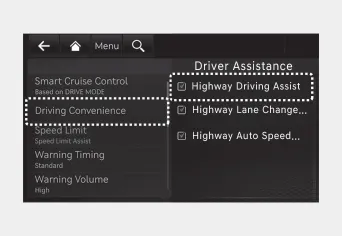 - Si se selecciona "Asistencia de conducción en autopista" (o "HDA (Asistencia de conducción en autopista)"), contribuye a mantener la distancia con el vehÃculo que le precede, mantiene la velocidad fijada y ayuda a centrar el vehÃculo en el carril.