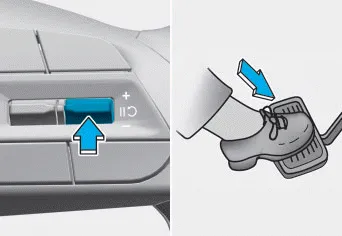 Compruebe las condiciones de conducción antes de accionar el interruptor +. La velocidad de conducción puede aumentar rápidamente cuando se empuja hacia arriba y se mantiene pulsado el interruptor +.