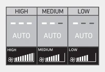 Puede controlar la fuerza del viento en tres etapas pulsando el botón AUTO durante el funcionamiento automático.
