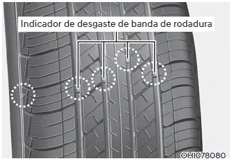 Si el neumático se desgasta de forma irregular, aparecerá un indicador de desgaste de la banda de rodadura en forma de banda sólida a lo largo de la banda de rodadura. Esto indica que quedan menos de 1,6 mm (1/16 pulg.) de banda de rodadura en el neumático. Cambie el neumático cuando suceda esto.