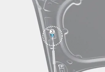5. Mantenga el capó abierto con la barra de soporte (3).