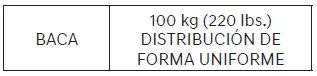 Si el vehÃculo está equipado con un techo solar, asegúrese de no cargar objetos en la baca de modo que puedan impedir el funcionamiento del techo solar.
