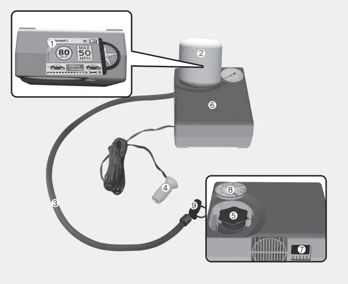 Los conectores, el cable y la manguera de conexión están guardados en la carcasa del compresor.