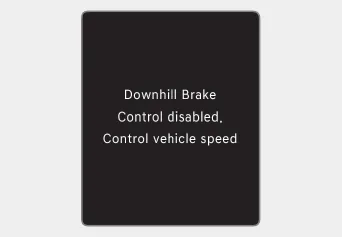 Cuando el control de freno cuesta abajo no funciona correctamente, aparece este mensaje de advertencia en la pantalla LCD del tablero y se oye un sonido de advertencia. Si esto ocurre, controle la velocidad del vehÃculo pisando el pedal del freno.