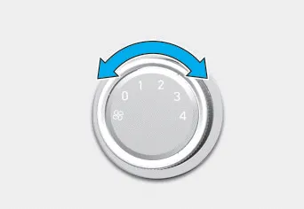 Gire el mando hacia la derecha para aumentar la velocidad y el flujo del aire. Gire el mando hacia la izquierda para reducir la velocidad y el flujo del aire.
