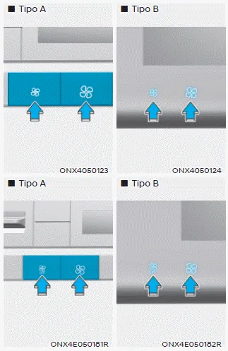 La activación del ventilador con el interruptor de encendido en la posición ON podrÃa provocar la descarga de la baterÃa. Accione el ventilador cuando el motor esté en marcha.