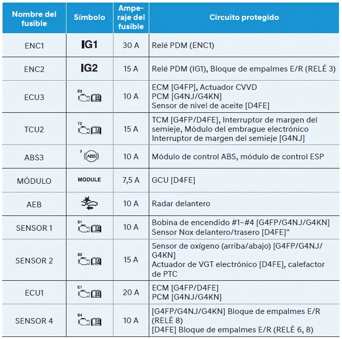 Panel de fusibles del compartimento del motor (bloque PCB)