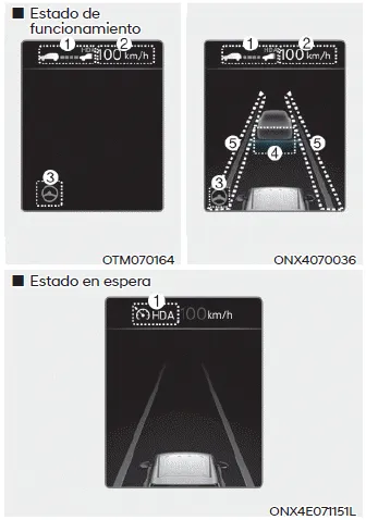 La asistencia de conducción en autopista se mostrará como se indica a continuación según el estado de la función.