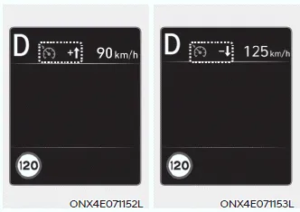 Si el lÃmite de velocidad de la carretera cambia durante el funcionamiento de la asistencia de lÃmite de velocidad manual o del control de crucero inteligente, se muestra una flecha en el sentido hacia arriba o hacia abajo para informar al conductor de que es necesario cambiar la velocidad fijada. En este momento, el conductor puede cambiar la velocidad fijada de acuerdo con el lÃmite de velocidad utilizando el interruptor + o - en el volante.