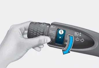 Para encender la luz antiniebla trasera: Coloque el interruptor de los faros en la posición de los faros y, a continuación, gÃrelo (1) a la posición de la luz antiniebla trasera.