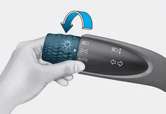 Para accionar las luces, gire el mando en el extremo de la palanca de control a una de las siguientes posiciones: