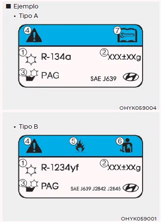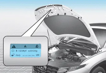 Puede averiguar qué refrigerante se utiliza para el aire acondicionado de su vehÃculo en la etiqueta ubicada en el interior del capó.