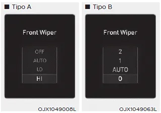 Puede activar o desactivar la función Aviso de limpiaparabrisas/luces desde el menú Ajustes Usuario en la pantalla LCD del tablero. Seleccione: