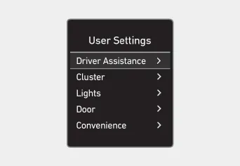 Cuando se selecciona el sistema de infoentretenimiento, solo se admite el modo Ajustes Usuario en el sistema de infoentretenimiento, pero no se admite el modo Ajustes Usuario en el tablero de instrumentos.