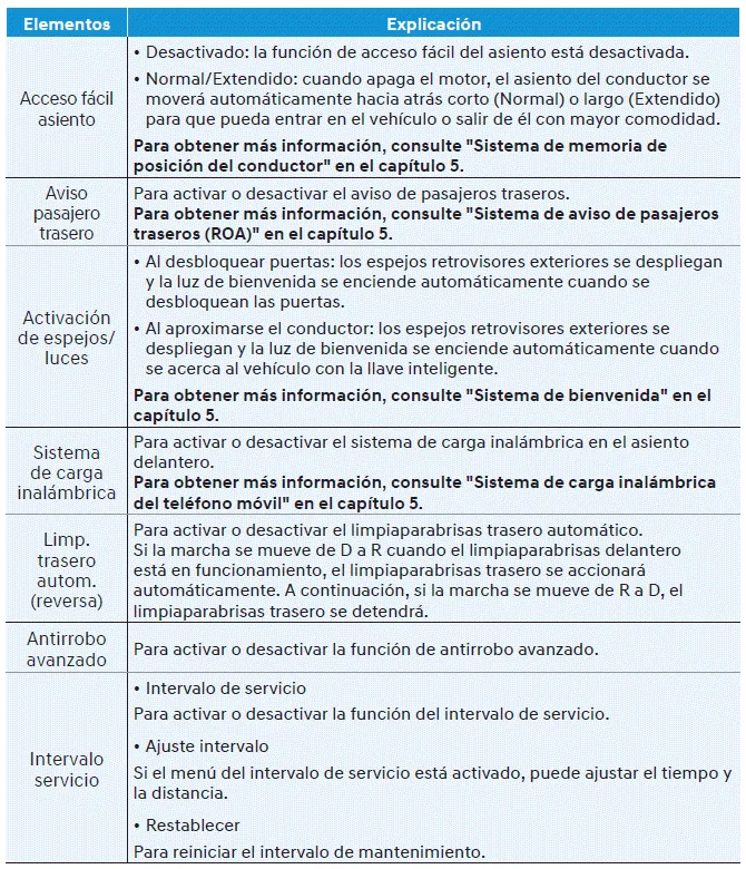 Hyundai Tucson (NX4) Manual del propietario: Ajustes de la asistencia de