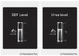 Este modo muestra la cantidad aproximada restante de solución de urea en el interior del depósito de solución de urea.