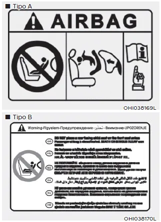 Nunca coloque un sistema de sujeción para niños en el asiento del pasajero delantero, a no ser que se haya desactivado el airbag.