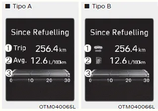 Para reiniciarlos manualmente, pulse el interruptor OK en el volante durante más de 1 segundo cuando se muestre "Desde el repostaje".