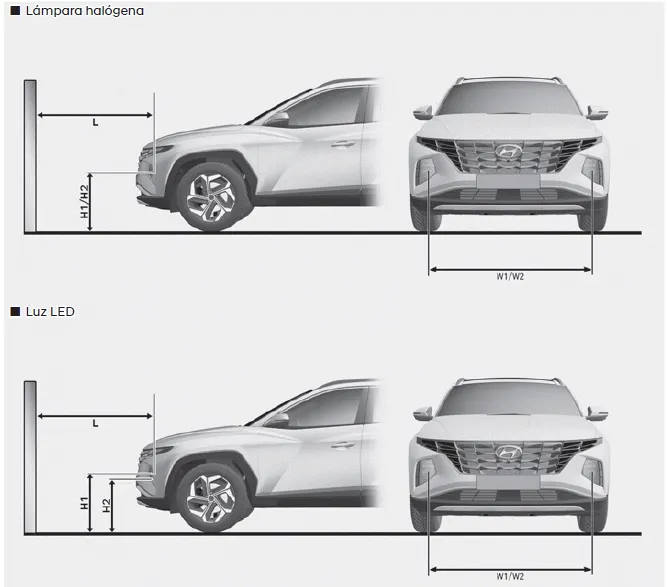 H1: altura entre el centro de la bombilla del faro y el suelo (luz de cruce)