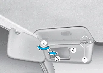 Para utilizar el espejo de cortesÃa, tire del parasol hacia abajo y deslice la cubierta del espejo (3).