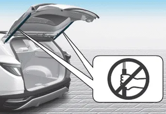 No sujete la pieza (elevador de gas) que soporta el portón trasero. Tenga en cuenta que la deformación de la pieza podrÃa causar daños en el vehÃculo y riesgo de lesiones.