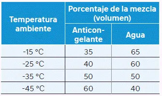 Compruebe la protección anticongelante o nivel de refrigerante al menos una vez al año, al principio de la temporada de invierno y antes de viajar a un clima más frÃo.