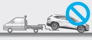 • No remolque con un remolcador de eslingas. Utilice un equipo elevador de ruedas o una plataforma de carga plana.