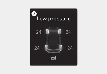 (2) Indicador de la posición del neumático con presión baja e indicador de la presión de los neumáticos (mostrados en la pantalla LCD)