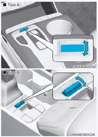 El modo cambia, como se indica a continuación, cada vez que se pulsa el botón DRIVE MODE (modo de conducción) o se conmuta.
