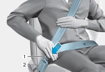 Sáquelo del retractor e introduzca la lengüeta metálica (1) en la hebilla (2). Se escuchará un "clic" cuando la lengüeta quede bloqueada en la hebilla.