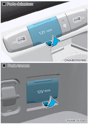 La toma de corriente está diseñada para proporcionar alimentación a teléfonos móviles u otros dispositivos diseñados para funcionar con los sistemas eléctricos del vehÃculo. Los dispositivos deben consumir menos de 180 vatios con el motor en marcha.