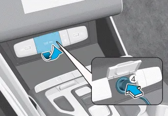 7. Conecte el cable y el conector (4) a la toma de corriente del vehÃculo.