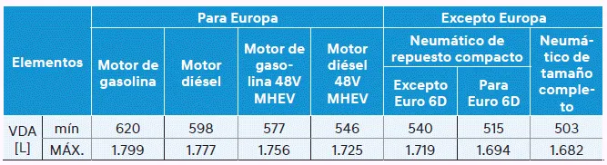 MÁX. : mín. : con los asientos traseros de la 2ª fila trasera plegados